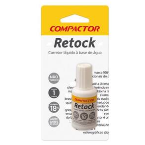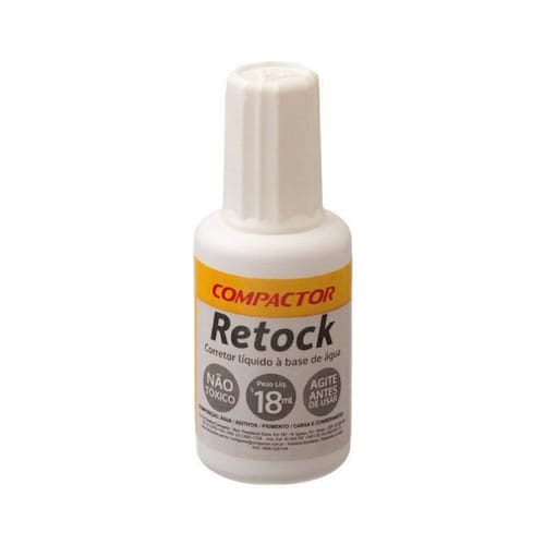 Corretor Líquido Retock 18ml Compactor Retock é um corretivo á base de água, ideal para corrigir textos escritos com canetas esferográficas, impressões e fotocópias sobre diversos tipos de superfícies. Super prático, possui secagem rápida, fácil manuseio e não faz sujeira.