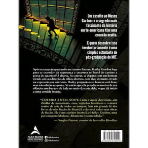 Um assalto ao Museu Gardner e o segredo mais fascinante da história norte-americana têm uma conexão oculta. E quem descobre isso involuntariamente é uma simples estudante de pós-graduação do MIT. Após ser pega trapaceando no cassino Encore, Hailey Gordon foge para se esconder da segurança e encontra no hotel do cassino a porta do quarto 633 aberta. Ao entrar, se depara com um homem virado em sua direção, de olhos abertos, com algo de muito errado na expressão em seu rosto. Hailey pergunta se o homem está bem, mas não obtém resposta. Só então ela percebe o motivo de seu silêncio: um buraco de bala no meio da testa dele, o que dá início a uma corrida insana. “CORRIDA À MEIA-NOITE é uma viagem eletrizante, um thriller de assassinato, caos, segredos históricos e o maior roubo de arte de todos os tempos. Sou um grande fã dos livros de não ficção de Mezrich e devorei todas suas obras de ficção. Ele é um escritor incrível, e Hailey Gordon, uma personagem fabulosa. Altamente recomendado.” — Douglas Preston, coautor do best-seller Bloodless Marca: ALTA NOVEL