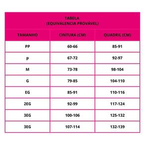 TAMANHO//CINTURA cm //QUADRIL cm P//67-72//92-97 M//73-78//98-104 G//79-85//104-110 EG//85-91//110-116 2EG//92-99//117-124 3EG//100-106//125-132