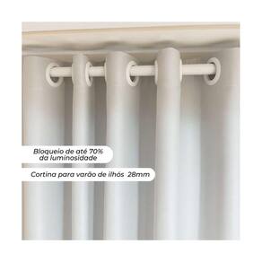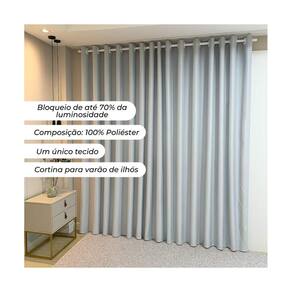 A cortina Corta Luz é funcional e pode ser usada sozinha ou combinadas com outra linha. Com o objetivo de amenizar ou bloquear até 70% a claridade e tornar o ambiente bem escurinho e relaxante, as cortinas desta coleção se inspiram na beleza das noites e proporcionam agradáveis momentos de aconchego. Pode ser utilizado em seu quarto, sala ou escritório. Tecido 100% poliéster com toque liso e sofisticado. A cortina é composta por 2 partes de 2,70m de largura e 2,50m de altura possuindo bainha em suas laterais e barra na parte inferior. Indicado para varão de 2,50m para maior franzimento, contém 36 ilhóses cromados. Fotos Ilustrativas, não acompanha varão
