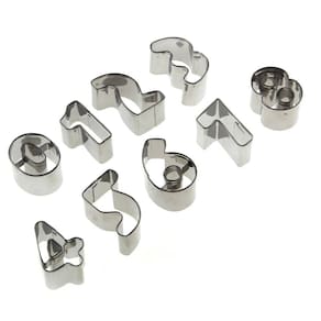 Características principais: - Material: inox de alta qualidade - Fácil de limpar: basta lavar com água e sabão neutro - Dimensões aproximadas de cada peça: 2x2x4 cm altura x largura x comprimento - Conjunto com 09 peças, com números de 0 a 9