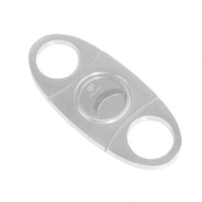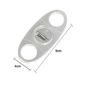 Cortador de charutos Cohiba. Cortador de charutos luxo para pessoas exigentes em um bom corte em charuto. Fabricado pela Cohiba, umas das maiores empresas no seguimento com produtos elegantes e alta qualidade. Dupla Lâmina Inoxidável Cortador de Charutos. Modelo: Guilhotina. Dimensões: 9cm comprimento. Diâmetro do furo: 22mm. Metal: Aço Inoxidável.