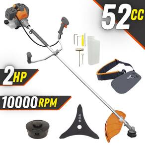 Com guidão ergonômico lateral, permite um alcance amplo e maior mobilidade, capaz de aumentar a produtividade diária. Possui motor 2 tempos á gasolina, de 51,6 Cilindradas (52cc) 10.000 de rotação 2,0 HP de potência que proporcionam maior performance e economia na operação. Seu conjunto de acessórios inclui kit de ferramentas, cinto de sustentação, carretel de nylon e lâmina de corte 3 pontas.