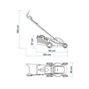 - instruções de uso: antes de ligar o equipamento, verifique se a tensão do cortador está de acordo com a tensão da rede elétrica. Para a sua segurança e para evitar que o cabo elétrico se desconecte do plug, enquanto o trabalho estiver sendo executado, conecte o cabo elétrico ao fixa-cabo do cortador de grama. Em gramados muito altos, procure fazer primeiro um pré-corte da grama com a regulagem de corte alto e somente depois o corte na altura definitiva. Isso facilita o trabalho e não sobrecarrega o motor.