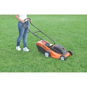 - durante o uso: durante o trabalho, use sempre calçados fechados. Não permita que pessoas inexperientes usem o cortador sem antes ler o manual de instruções. Sempre, após um impacto mais forte com algum obstáculo, a lâmina deve ser retirada e examinada cuidadosamente. Se houver necessidade, deve ser trocada por outra nova. Procure conduzir o cabo elétrico por trás do cortador e sempre pelo lado já cortado da grama. Evite acúmulo de grama embaixo do cortador.