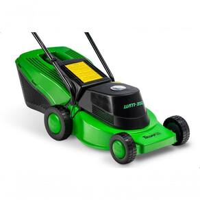 Regulagem de altura de corte: Em 3 posições, com variação de 3,6 a 6,5 cm (sistema de regulagem de altura por eixo, nas 2 rodas dianteiras e 2 rodas traseiras).