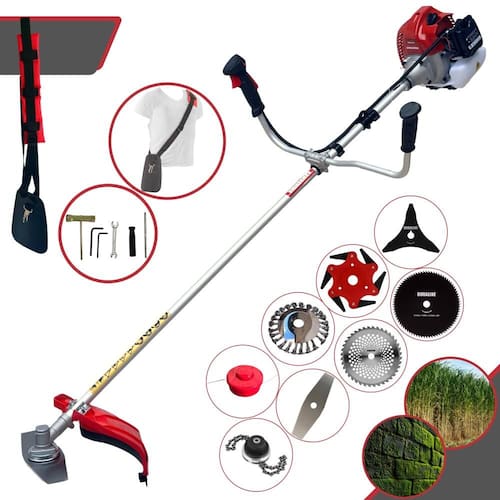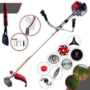 Com guidão ergonômico lateral, permite um alcance amplo e maior mobilidade, capaz de aumentar a produtividade diária. Possui motor 2 tempos á gasolina, de 62 Cilindradas; 3HP de potência que proporcionam maior performance e economia na operação. Seu conjunto de acessórios inclui kit de ferramentas, cinto de suporte almofadado, carretel de nylon e lâmina de corte 3 pontas.