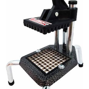 Cortador De Legumes Pequeno - Vitalex Descrição Corpo em alumínio fundido Cabo e basculante em plástico Colunas e pés em tubo de aço 5/8 Facas em aço inox de 10 mm Pintura eletrostática Para uso doméstico Cor: Preto Altura 40 cm Largura 19,5 cm Profundidade 27,5 cm Peso 965 g Ean: 7898688650005