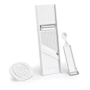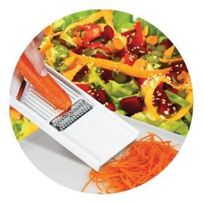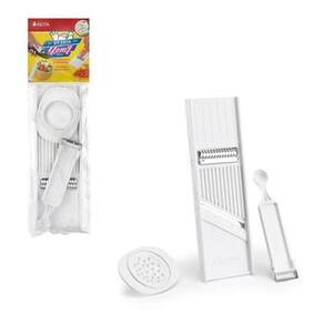 Este kit é do tipo indispensável para a cozinha Com ele você consegue preparar um número enorme de receitas. Com o Mandoline, as fatias são cortadas com uma espessura uniforme, o que é particularmente importante para assar e fritar por exemplo, para batata chips, assim como é importante na apresentação de pratos. Com o fatiador você obtém tiras longas e finas, obtidas perfeitamente e com muito menos habilidade e esforço do que seria necessário se estivesse cortando com uma faca. Utilize também para ralar queijos, fazer batata palha, macarrão de abobrinha etc. O Descascador é ideal para descascar cenouras e outros vegetais. E finalmente com o Boleador você faz bolinhas decorativas com queijo, manteiga, frutas e legumes Deixando a apresentação dos pratos muito mais bonita Kit Descascador/Boleador 4 em 1 Keita Composição : plástico PS e aço inox Validade : Indeterminada Contém 1 Cortador dupla face 1 Protetor 1 Descascador 1 Boleador Fabricante/Marca : Keita Dimensões: Cortador dupla face: 24 cm x 8 cm x 1,5 cm. Boleador e descascador: 16 cm x 4 cm x 1cm