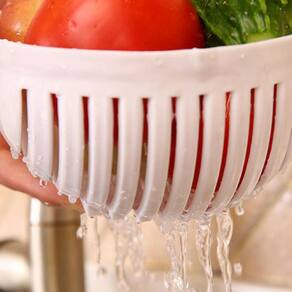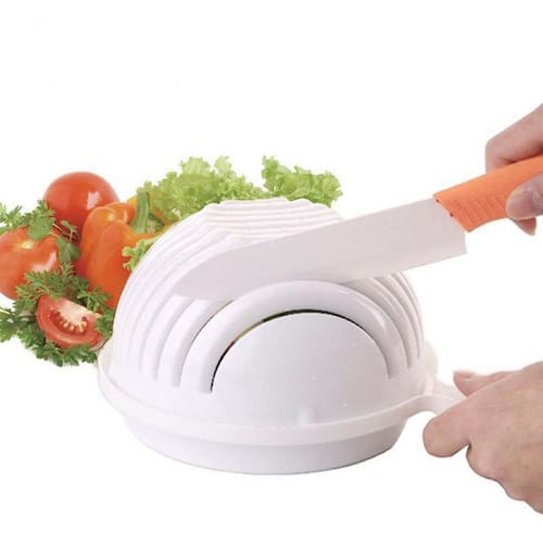 A tigela auxiliar o corte e fatias da salada. Feito do material durável, fazendo saladas frescas e saudáveis em 60 segundos. O formato de onda levanta os slits longe de seus ingredientes, ajustando-os acima para um corte transversal perfeito. Com tábua de corte livre e limpa sem se preocupar em cortar os dedos. Perfeito para salada de vegetais, salada de frutas, de salada de frango, ou uma variedade de alimentos.