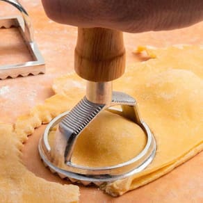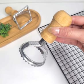 Cortador de massas, biscoitos e ravioli. O cortador possui estrutura de aluminio e cabo em madeira, proporcionando maior segurança ao manusear. As bordas caneladas, facilitam carimbar e cortar biscoitos e massas. O cortador de biscoitos e massas é pratico, leve e resistente.