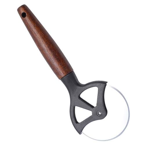 O Cortador de Pizza Preto com Cabo de Madeira 20,7 cm é ideal para dividir e cortar pizzas com precisão.