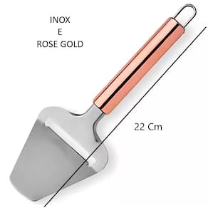 Produto de ótima qualidade produzida em aço inox e cabo com acabamento em rosê gold, que possui o design moderno deixando sua cozinha ainda mais bela.