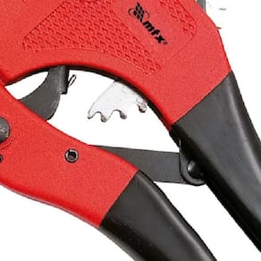 Cortador De Tubos De Pvc 42mm - 7841059 - Mtx Cortador de Tubos de PVC 42mm - 7841059 - MTX Descrição: A tesoura corta tubos é indicada para efetuar cortes de até 42 mm em rodapés, perfis, tubos de borracha, filetes de PVC (tiras encaracoladas, ripas, que abrange as articulações nos cantos dos móveis). A forma trapezoidal da tesoura de trabalho conta com duas arestas de corte, não deixando rebarba. Fabricada em aço de alta qualidade, com mecanismo catracado e cabo emborrachado, oferecendo maior segurança e conforto na empunhadura.