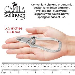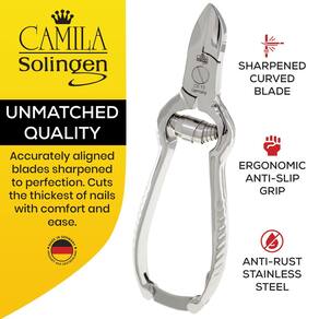 Manicure e pedicure pesada Camila Solingen Professional CS13 double Barrel Spring de 5,5", para unhas e pés grossas e resistentes. Feito de Solingen, aço inoxidável alemão de alta qualidade, que elimina a preocupação de que o dispositivo enferruje e garante um corte ultra afiado de longa duração. Projetado para um maior conforto e com lâminas curvas afiadas, permitindo um corte preciso com uma lâmina de corte de 20 mm. Um design ergonômico fino e elegante aprimorado com um impressionante acabamento em prata cromada traz conforto e prazer em cada uso. Vem com uma alça antiderrapante e um fecho de travamento para proteger a lâmina durante viagens ou armazenamento. Cortadores femininos e masculinos para unhas maduras, unhas fúngicas ou unhas muito grossas que requerem cortadores afiados com abertura ampla. Em todo o mundo, técnicos profissionais de beleza de unhas e usuários domésticos confiam em Camila Solingen para criar uma manicure e pedicure perfeitas. - Cortador de unhas profissional de alta qualidade de 5,5 polegadas. Pinça de unhas grande para unhas duras e grossas para idosos, homens e mulheres e atletas. Fabricado em Solingen, Alemanha, onde são produzidos cortadores de unhas de aço inoxidável da melhor qualidade - um cortador de unhas de podólogo para unhas grossas e uma ótima ferramenta para unhas encravadas. Cortador de unhas de aço inoxidável com lâmina angular de grau cirúrgico, garantindo um corte preciso em unhas grossas com facilidade e reduzindo o risco de propagação de fungos nas unhas dos pés - Cortadores de unhas femininos e masculinos de design ergonômico com mola de cano duplo para facilitar o uso. A lâmina de travamento curva apresentava uma abertura em forma de tesoura, garantindo um corte suave sem esmagar o prego. Fecho de travamento para proteger a lâmina durante viagens ou armazenamento. - Cortador de unhas profissional para unhas encravadas femininas e masculinas. Um cortador de unhas grande projetado para cortar unhas grossas e duras dos pés e das mãos. O cortador de unhas encravadas corta eficazmente as dolorosas unhas encravadas e as unhas penduradas. - Camila Solingen tem a confiança global de técnicos profissionais de beleza de unhas. Polido e afiado à mão, cada produto Camila Solingen é confiável e testado em termos de qualidade para garantir que você tenha a melhor experiência!