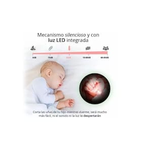 Polidor cortador de unhas elétrico para bebêsTamaño: 13,5 x 4,5 x 3 cmSpuede recortar y pulir de forma segura e rápida las uñas de manos y pies de bebés y niños, pulir y dar forma. Não danificará las cutículas ni las camas suaves de las uñas.Posee 2 velocidades y 2 rotaciones (en sentido horario del reloj y reversa) para elegir, mejorando el recorte de uñas más suaves.Puede recortar las uñas de su bebé mientras duerme sin causarle molestias.Incluye una luz LED frontal eficaz, en la seguridad cuando lo usa en la noche.El diseño ers suave y curvo y proporciona una sensación de agarre indolora, suave y cómoda durante.Viene en un estuche de almacenamiento, fácil de llevar, para usar en el hogar o llevarlo de viajes.Contenido:1 x Recortadora de uñas elétrica 6 x Peças de acessóriosLa lima debe use pilas. Os pilares não estão incluídos.