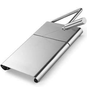 Cortador E Fatiador De Queijo A Fio Inox Ref Ac19171 Características: Lindo Fatiador em Aço Inoxidável. Maior praticidade na hora de fatiar frios. Possui alça que oferece uma aderência confortável para que você possa cortar queijo com facilidade. Sua base tem pequenas borrachas e age como uma tábua de corte para evitar deslizes. Fio de aço inoxidável fortes e duráveis para cortes de queijos duros e macios. Sua base possui tamanho perfeito para a maioria dos blocos de queijos. Perfeito para aniversários, casamentos, natal e outras ocasiões. Material em aço inoxidável de alta qualidade e pés de borracha. Prático, fácil manutenção e limpeza. Quantidade: 01 Uso: Cozinha Medidas: 24,5CM X 12,7CM Imagens meramente ilustrativas.