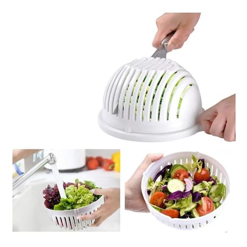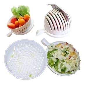 cortador e fatiador de saladas, frutas, e legumes, bowl. O cortador fatiador também pode ser utilizado de escorredor. A tigela auxilia o corte feito de material durável. Faça uma salada saudável em 60 segundos. Salad cutter bowl. Boas compras