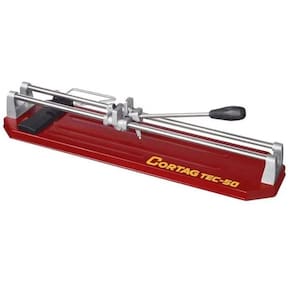 CORTADOR E RISCADOR DE PISO PROFISSIONAL TEC-50 61148 CORTAG CÓDIGO: 61148MODELO: CORTADOR PROFISSIONAL TEC-50C 695 mmH 110 mmL 185 mmDIMENSÕES DA EMBALAGEM UNITÁRIA: 700 mm x 195 mm x 115 mmCOMPRIMENTO MÁXIMO DE CORTE: 510 mmESPESSURA MÁXIMA DE CORTE: 10 mmTAMANHO MÁXIMO DE PISO PARA CORTE DIAGONAL: 360 mm x 360 mmO Cortador de Piso TEC 50, da Cortag, garante cortes precisos e de qualidade.CaracterísticasOs cortadores profissionais da linha TEC são indicados para cortar pisos cerâmicos e porcelanatos até 10 mm de espessura.Sistema de separação na parte superior do carro guia.Carro-guia em alumínio injetado.Guias em aço carbono niquelado proporcionando maior durabilidade.Rodel cortante com haste em aço carbono zincado e disco de carboneto de tungstênio (wídia).Sistema de separação em aço e tratado termicamente para maior vida útil.Barra de encosto em plástico injetado.Limitador lateral para cortes retos e diagonais precisos.Base em chapa de aço carbono com pintura eletrostática a pó.Suporte das guias em alumínio injetado.Informações Técnicas- Comprimento Máximo de Corte: 510mm;- Espessura Máxima de Corte: 10mm;- Sistema de Separação: Sim;- Barra de Encosto: Sim, em Plástico Injetado;- Limitador Lateral: Sim, para Cortes Restos e Diagonais Precisos;- Suporte das Guias: Em Alumínio Injetado;- Ródeis Para Substituição: 80mm*/80mm Duplo.