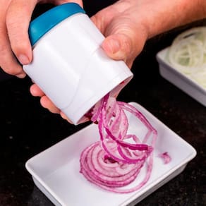 O Cortador Espiral da linha Gourmet da Prana é o acessório perfeito para cortar cebolas com facilidade e sem arder os olhos.