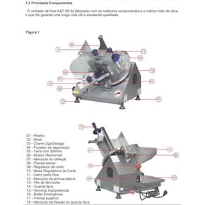O cortador AXT 30i tem todas as peças em contato com os alimentos fundidas de alumínio especial e acabamento em anodizado brilhante, sistema de fixação com um encosto lateral e um braço em forma de L com movimentação de 360 e carro removível, possibilitando maior facilidade de limpeza e proporcionando maior segurança ao operador na hora de proceder á afiação da faca.