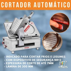 O Cortador e Fatiador de Frios Elétrico automatico Bermar é ideal para cortar frios e legumes em geral. Fabricado em inox, possui um corte seguro e preciso de 0 à 7mm.