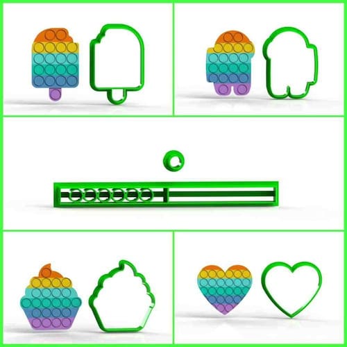 Cortador Kit Pop It - 4 Modelos Coração Picole Cup Cakes Coração Régua Tamanho 7 Cm