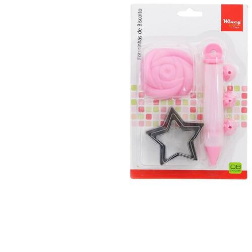 Cortador para biscoito de inox com forma 4 bicos 8 peças Tamanho aproximado da embalagem: a:21,5xl:14,5cm Peso aproximado: 95 Tipo de produto: cortador / molde para biscoito com forma + decorador / bisnaga com 4 bicos Cor: rosa Composição: plastico, inox e silicone Qtd: 1 Marca: Não Informado