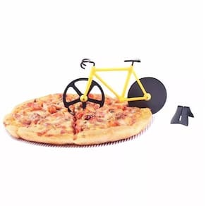 Um incrível cortador de pizza em formato de bicicleta, que vai deixar o momento daquela pizza ainda mais agradável e divertido