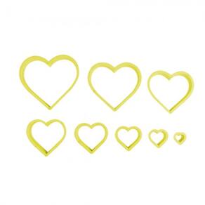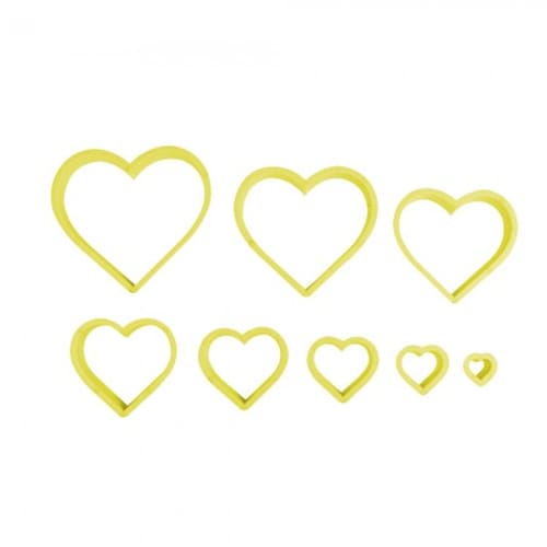 Kit cortadores coração liso. Corações que atribuem um toque delicado e sofisticado, são 8 opções com tamanhos diferentes. Faça lindos apliques para seus doces, bolos, tortas, lembrancinhas e decorações, surpreenda seus clientes e eleve o nível de seus trabalhos com o corte preciso e acabamento profissional que esses cortadores atribuem.