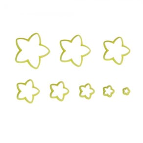 Kit cortadores estrela. Obtenha estrelas que atribuem um toque delicado e sofisticado, são oito opções com tamanhos diferentes. Faça lindos apliques para seus doces, bolos, tortas, lembrancinhas e decorações, surpreenda seus clientes e eleve o nível de seus trabalhos com o corte preciso e acabamento profissional que esses cortadores atribuem.