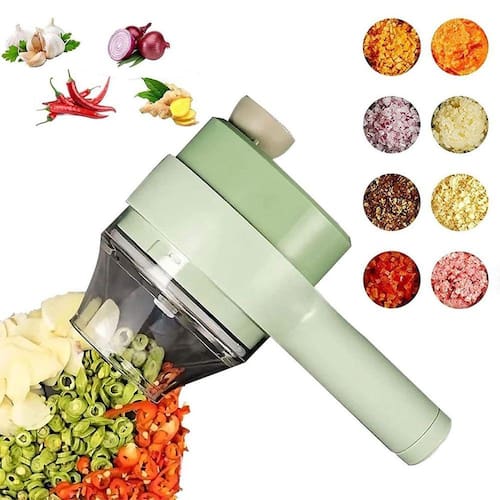 Nome da marca: Grupo Kero Comprar Online Cortador Triturador Elétrico Multifuncional Para Vegetais E Carnes Aço InoxidávelDescrição do produto:Com ele você pode ter um cortador de vegetais, picador de carne e ainda uma escova de limpeza elétrica ao mesmo tempo, apenas trocando os acessórios do conjunto multifuncional.É mais conveniente cortar seus vegetais frescos direto no recipiente, adicionar a mistura ou o condimento que desejar de forma super prática.Utilize para triturar diversos vegetais e condimentos como cebola, alho, pimenta, salsinha, cominho, gengibre e entre outros,O produto acompanha um socador que auxilia na introdução de vegetais pequenos ou pedaços prevenindo acidentes e este ainda conta com descascador de frutas do lado oposto.Especificações:Material: abs + pp + pc + aço inoxidávelPotência do motor: cerca de 40wCapacidade do copo: 200mlCapacidade da Bateria: 1500 mAhTensão de carregamento: 5vCor: VerdeTamanho Aproximado: 12cm A X 9cm Circunferência Tamanho do Cabo: 9cmPeso Aproximado: 570gItens Inclusos:1x Triturador Multifuncional1x Cone transparente1x Cabeça de Corte1x Cabo Usb1x Espátula1x Escova1x Socador Marca: Kero Comprar Online