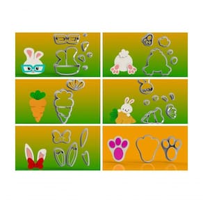 Cortadores Kit Páscoa 6 Modelos Mod 3 Tamanho 6 Cm Ideal para cortar pasta americana/Ninho Material: Plástico PLA - Oferece mais segurança para em alimentos. , a . Fabricado em impressora 3d. As bordas de s cortadores são modelados com fino corte, melhorando assim a qualidade de acabamento. O apoio do cortador tem uma borda bem mais larga, afim de não machucar a mão de quem o utiliza Tamanho aproximado. Foto meramente ilustrativa. A cor do , não alterando a funcionalidade do produto.basta escolher um desenho, e o tamanho que precisa. . Obs.: As medidas dos cortadores são referentes sempre ao maior lado. MARCA: HB FORMAS E CORTADORES undefined Marca: HB FORMAS E CORTADORES