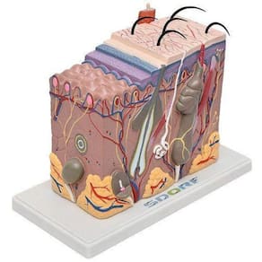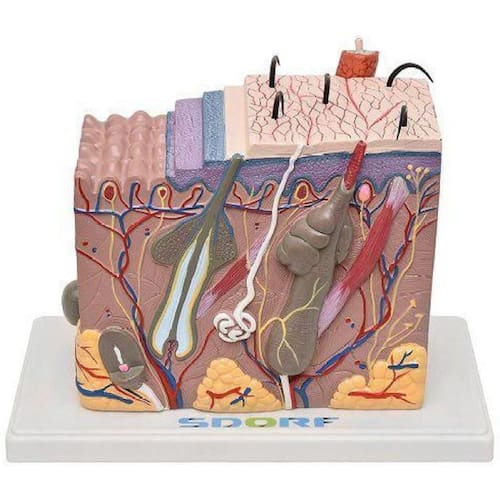 Modelo de pele ampliada em bloco, confeccionado em PVC, é um modelo com precisão anatômica e muito rico em detalhes que possibilita a visualização de forma detalhada de todas as camadas da pele. O modelo SD-5053 apresenta as seguintes estruturas entre outras: Epiderme Poros, Camada Basal, Camada Córnea, Camada Granulosa, Camada Espinhosa, Pelos, Capa de Malpighi ; Derme Tecido Conjuntivo, Nervos Sensitivos, Papilas Dérmicas, Terminações Nervosas, Músculos Eretores Dos Pelos, Glândulas Sudoríparas, Folículo Pilosos, Bulbos Pilosos, Raiz Dos Pelos, Glândulas Sebáceas ; Hipoderme Células Gordurosas, Corpúsculo De Pacini, De Folículos Pilosos ; Vasos Sanguíneos; - Montado sob base plástica; Acompanha: 01 Manual em português, 01 Termo de . embalagem: Caixa de papelão. informação adicional Peso 0.990 kg Dimensões 26 x 14 x 22 cm Marca: Não Informado