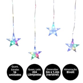 Cortina 16 Estrelas LED Color 224 Lâmpadas 8 Funções 3m