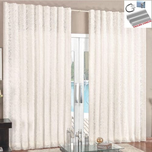 Cortina 2 Mts Sala Quarto Renda com Voal para Trilho Comum