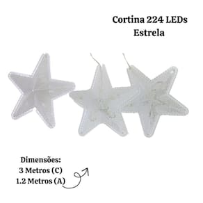 Cortina com estrela da ponta usada para você decorar seu Natal. Modelo super inovador. Tem estrelas na ponta de cada cordão que forma a cortina. Apresenta várias funções de pisca onde você regula a que mais lhe agradar. Modelo bivolt Warm cor branco quente (amarelada).