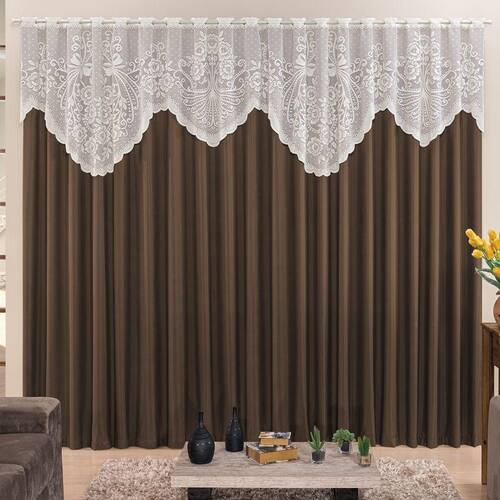 Cortina 4 Mts do Momento Sala Quarto Renda com Microfibra para Varão