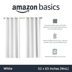 Cortina de janela blackout Amazon Basics Light Blocking Room Darkening com 2 painéis, ilhós, para sala de estar e quarto, 52 x 63 polegadas, branca — conjunto de 2