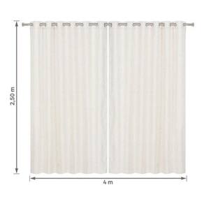 A Cortina Bali é ideal para compor a decoração de ambientes como salas e quartos. Este modelo não possui blackout. Cada embalagem contém 2 folhas, com dimensão de 2,00x2,50m. Produto na cor bege, com composição 89,77% poliéster e 10,23% linho.