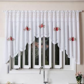 cortina bando branca de renda cascata cozinha 3,00 m larg x 1. 00 m alt flores, a melhor renda você vai amar, produto e novo