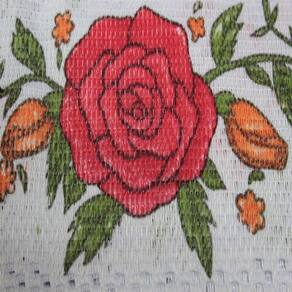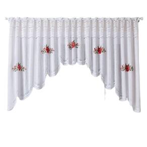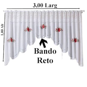 Cortina bando renda cascata branca 3,00 m x 1,00 alt rosas