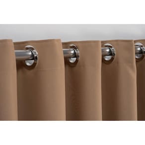 R: A cortina possui ilhós redondos e cromados, o que facilita a instalação. Basta passar o varão pelos ilhós e pendurar a cortina.