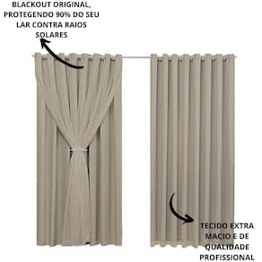 Cortina Blackout 4,00m X 2,60m Sala Quarto Tecido Com Voil + Presilha Moderna -Avelã
