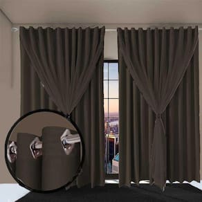 Cortina com tecido blackout é um dos preferidos na hora de dar um toque moderno a uma casa, pois o tecido liso conferem um charme e personalidade ao ambiente. Pensando nessas qualidades, criamos a cortina blackout totalmente em tecido. Além de linda e resistente, essa cortina transmitirá todo requinte e beleza dignos da realeza. A cortina em tecido blackout, consegue bloquear 75% a claridade, os ilhós eles são cromados e o tecido tem um excelente caimento e com voal liso transparente embutido na parte da frente da cortina, da um toque de mais elegância ainda