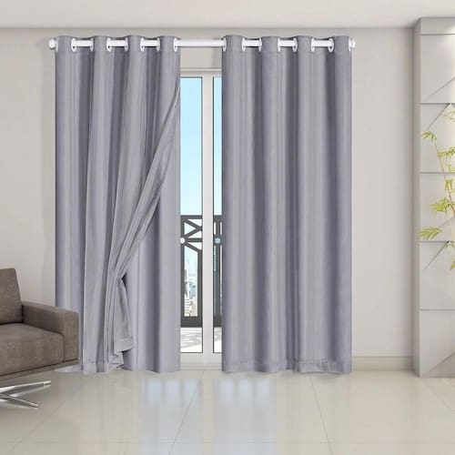 Cortina Blackout com voil 4,00 x 2,50 Cinza Cortina Voil e Microfibra 4,00 x 2,50Cortina em tecido voil e microfibra, os ilhós são redondos e cromados, tecido com excelente caimento. Medidas:4,00m largura x 2,50m altura Acabamento:Feito bainha nas bordas e nos barrados