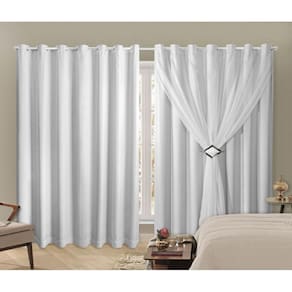 Cortina Blackout Com Voil Liso Para Sala ou Quarto 2,00m x 2,30m Cor: Branco Cortina Blackout Corta Luz Com Voil Composição do produto: Forro 100% Policloreto de Vinila PVC Tecido superior em Voal 100% Poliéster Acabamento feito na bainha
