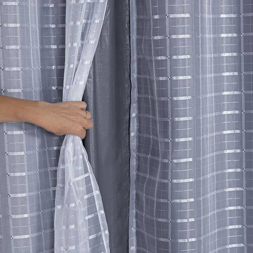 Cortina Blackout prata com Voil Xadrez 2,0 m x 1,4 m Branco