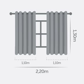 R: A cortina possui 2,20m de largura por 1,30m de altura.