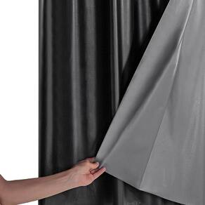 Cortina Blackout PVC com Tecido Voil 2,00 m largura (esticado) x 1,40 m altura A cortina possuí duas partes, o blackout de PVC e por cima o Tecido Voil. O PVC é um tipo de plástico especialmente feito para cortinas, possuí uma textura na frente para imitar um tecido e é colorido. A parte de trás do PVC é da cor cinza, a parte cinza que faz vedar 100 % a luz Por cima do PVC descrito anteriormente, é costurado o tecido Voil Produto composto por: 01 Cortina 2,00 mts x 1,40 mts no total, sendo: 02 Partes de 1,00 mts x 1,40 mts com 12 ilhoses no total de 28 mm Indicada para varão simples de até 1,50 mts, é possível utilizar tanto o varão grosso (28 mm), quanto o fino (19 mm) (Varão não incluso)